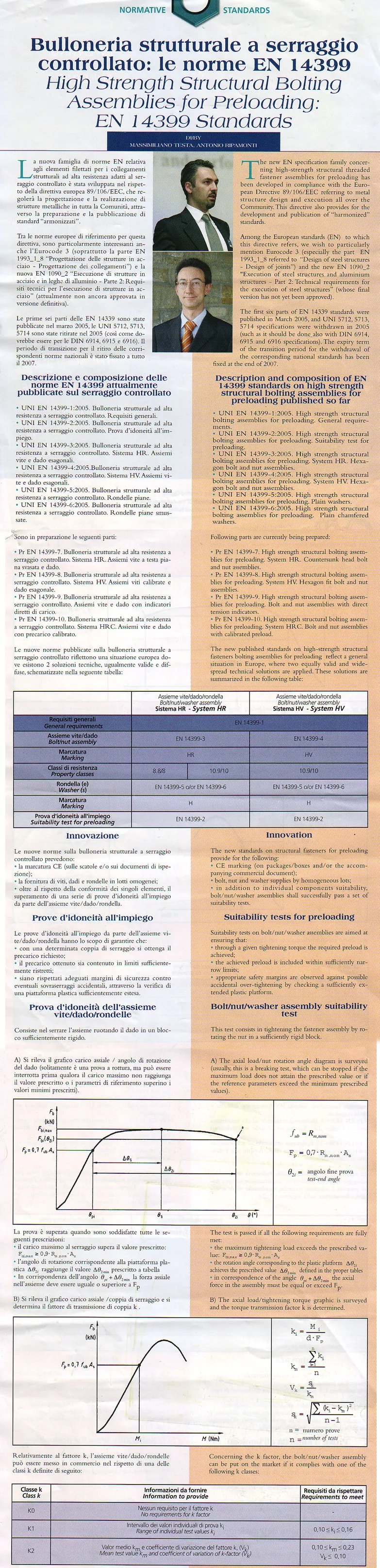 Fornitori di Bulloneria strutturale ad alta resistenza a serraggio controllato parte 4: sistema HV- assieme vite e dado esagonali